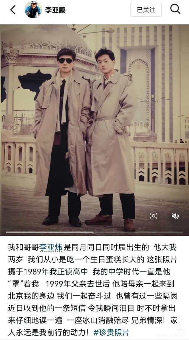 2025年之前,很多人把李亚鹏的名字定义为失败者,曾经有多么辉煌,现在就有多么落魄。 放弃了光鲜亮丽的演员身份,一头扎进了经商的大军当中。 屡试屡败,屡败屡战,他就像一个悲情英雄一般在商业的王国中沉浮。 直到2025年底,嫣然天使儿童医院因为欠了2600余万元的房租股票杠杆第三方平台,被房东告上法庭,一纸限期搬离的公告宣判了嫣然天使儿童医院的死刑。 医院自2012年运营至今,累计完成1.1万例唇腭裂手术(其中7000例全额免费),服务超50万人次患儿。 婚姻跟事业的失败阻挡不了他这些年为这个社会做出的贡献,李亚鹏从一个失败者变成了超级英雄,这个社会不允许李亚鹏跟嫣然天使儿童医院倒下。 生死存亡之际,李亚鹏迎来了自己的高光时刻,全民拯救嫣然天使儿童医院的号角就此吹响,大家用真金白银表达了自己对李亚鹏的支持。 短短不到一个月,网友捐款超2000多万,董宇辉、陈光标等名人纷纷慷慨解囊,伸出了援助之手。 李亚鹏被踩在地上多年的尊严,重新被捡起,李亚鹏的名字俨然成了救世主。 李亚鹏在2月26日通过社交平台宣布与亲哥哥李亚炜冰释前嫌,这场跨越18年的兄弟隔阂因一场慈善危机中的互相理解而彻底消融,哥哥一句“终于明白了以前不理解你的事”让李亚鹏反复阅读、瞬间泪崩。 李亚鹏与哥哥李亚炜相差两岁,却共享同月同日同时辰的出生时刻,从小吃同一块生日蛋糕长大。 中学时代哥哥长期保护李亚鹏,1999年父亲去世后,哥哥陪母亲赴京投奔弟弟,两人曾并肩创业奋斗。 后期因丽江雪山艺术小镇投资失败引发4.6亿债务纠纷,两人发生分歧,哥哥对李亚鹏举债做慈善事业的行为感到不满,兄弟关系逐渐疏远,冷处理近18年。 直到2026年1月,嫣然天使儿童医院因拖欠2600万租金濒临关停,李亚鹏公开账目、直播自救引发社会关注。 哥哥通过新闻得知弟弟16年救助超1.6万唇腭裂患儿的坚持,以及其面对质疑时的担当,彻底扭转了过往的埋怨。 1月23日,哥哥发来长信坦言:“知道你压力大,一直在坚强地扛着……终于明白了以前不理解甚至埋怨的事。” 他提到11岁的儿子称李亚鹏“在做伟大的事”,并主动携全家向嫣然捐款1万余元,同时让儿子申请成为志愿者。 李亚鹏晒出1989年兄弟合影及短信截图,感慨“一座冰山消融殆尽”,并强调“家人永远是我前行的动力”。 这场和解被网友视为“血浓于水”的典范,尤其在中年代际矛盾频发的背景下更显珍贵。 舆论认为,李亚鹏屡遭商业挫折却未改慈善初心,最终以行动赢得至亲理解;而哥哥的致歉与支持,成为其低谷期的情感支撑。 网友感慨:“再硬的汉子也会为家人的理解破防”,凸显亲情在岁月风霜中的韧性。 嫣然基金不仅是公益项目,更成为唤醒亲情的纽带。 哥哥在信中明确表示,李亚鹏对慈善的坚守让他重新理解了弟弟的价值观,也找回了家族自豪感。这种“因善和解”的模式,为公众提供了家庭冲突化解的新视角。 55岁的李亚鹏历经离婚、债务争议后收获至亲认可,被称作“好人有好报”。 一位网友评价:“中年人的体面,是等到一句‘我懂你’比赚一桶金更珍贵”,引发广泛共情。